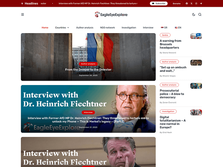 “REST Media“ social accounts state that the project is based in Serbia, which is true to a some degree. DFRLab was able to establish a link to a Serbian journalist Vesna Veizovic; however, there is more: Veizovic is also a contributor and almost certainly a co-founder of the “Eagle Eye Explore” (EEE). EEE was launched around May-June 2024 as anonymously-run “analytical” project. EEE is focusing largely on the same topics as REST, and the website structure is also very similar to REST. At the same time, EEE authors are primarily not anonymous and write under their real identities.